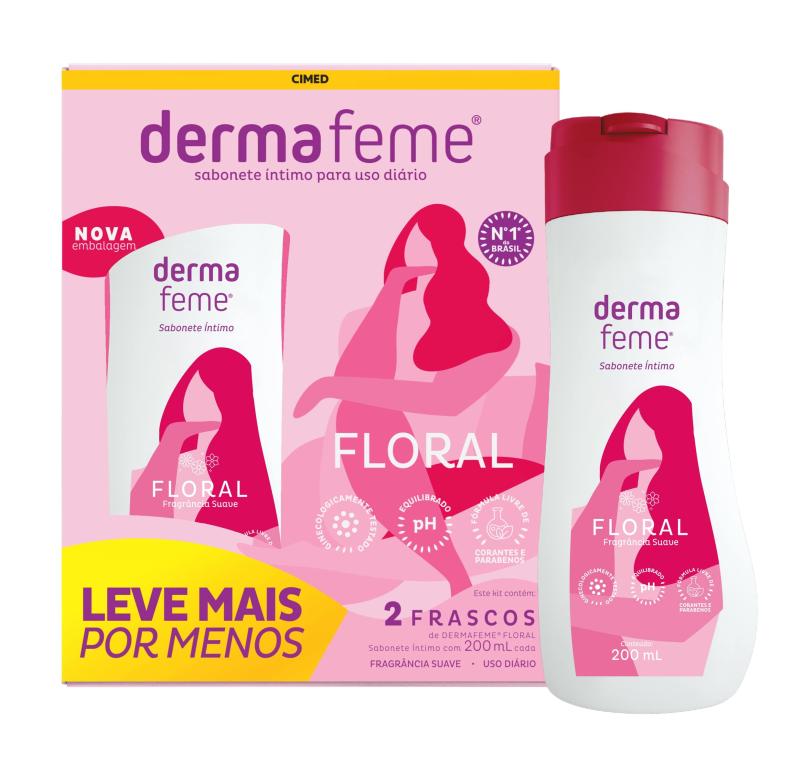 Dermafeme Floral proporciona limpeza e equilíbrio do pH da região íntima, além de proteção, conforto e bem-estar. Possui fragrância suave. Recomendado para uso diário.