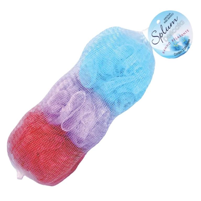 Esponja para peles sensíveis e delicadas. Limpa produndamente e massageia a pele. Produto atóxico. Validade indeterminada. Composição: polietileno e master. Sistema de qualidade Santa Maria. Pacote com três unidades. Enviaremos conforme disponibilidade de cor.