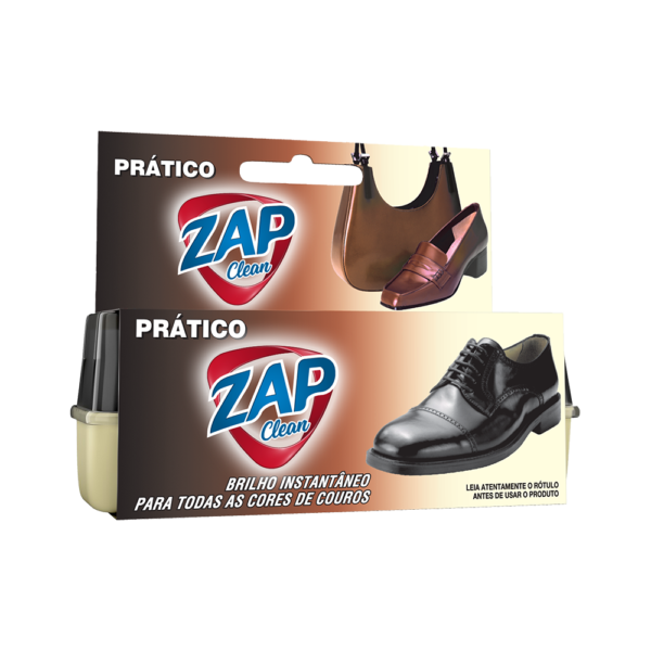 O Brilho Prático Zap Clean, é a maneira mais prática e eficaz para renovar artigos de couro, deixando um brilho uniforme sobre toda superfície.