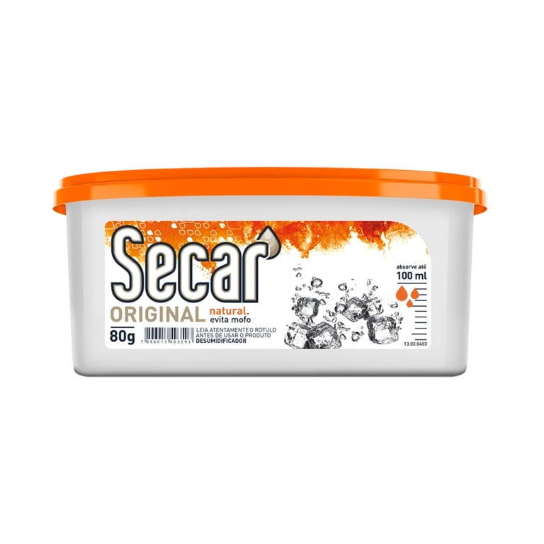 O Secar Natural é um Evita Mofo que age eliminando a umidade, evitando os problemas de mofo, fungos e odor em armários, guarda-roupas, gavetas, gabinetes de pias, bibliotecas, videotecas, discotecas, pianos, aparelhos de som, equipamentos fotográficos, etc. Secar age absorvendo a umidade do ambiente, armazenando a água no pote.
