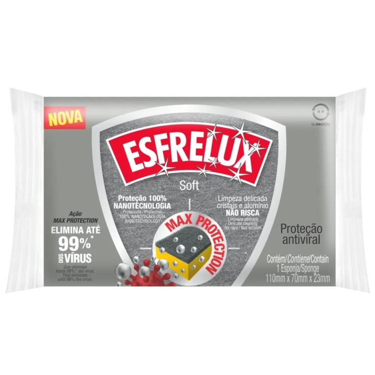 Esponja soft de limpeza delicada, para cristais e alumínio. Não risca. Possui maior poder de limpeza com a manta abrasiva mais macia. Qualidade superior, dura mais. Produto atóxico. Validade indeterminada. Composição: espuma de poliuretano e fibra sintética. 100% nanotecnologia MAX PROTECTION com íons de Prata, que elimina até 99% dos vírus. Sistema de qualidade Santa Maria.