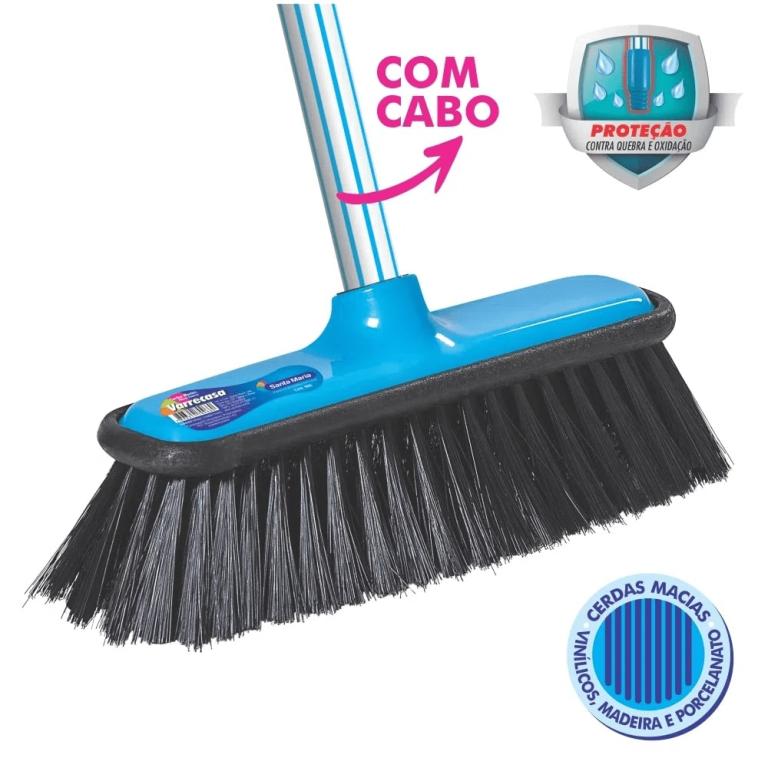 vassoura Varre Casa proporciona toda a delicadeza e atenção que a casa merece. Cerdas em PET 100% reciclado, macias, bem finas que podem substituir as cerdas de crina animal, trazendo, desta forma, eficiência na limpeza do ambiente. Ideal para pisos vinílicos, madeira e porcelanato. Nova ponteira para os cabos Santa Maria, um sistema que permite maior resistência e segurança, evitando quebras e oxidação. Altura (cm): 10 ., Comprimento (cm): 30 ., Largura (cm): 6 ., Peso (g): 283. Acompanha cabo em aço, resistente a impactos, e seu comprimento é de 1,18 m. Prática e eficiente como você desde 1960. Com o intuito de estar presente no cotidiano das pessoas e proporcioná-las facilidade e agilidade, a empresa Santa Maria se faz presente há 60 anos nos lares brasileiros, considerada uma das maiores empresas do Brasil no segmento de vassouras.