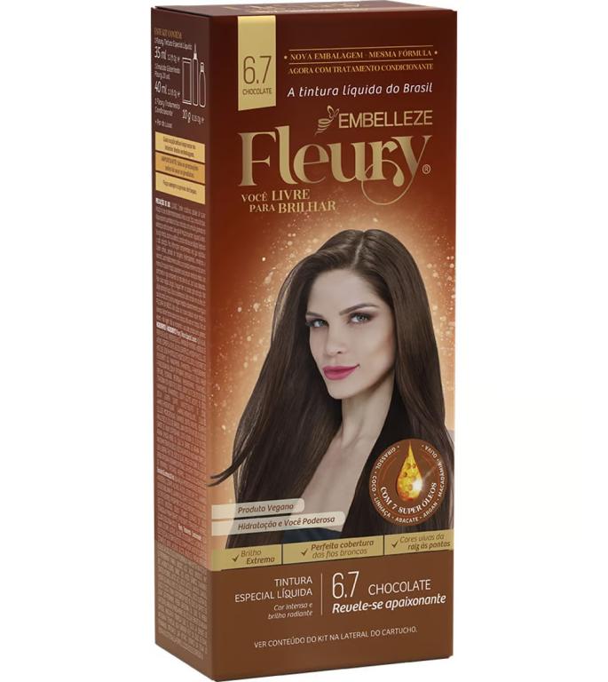 Conquistar um brilho a mais é se revelar uma nova mulher, mais confiante, mais feliz, com uma vida nova pela frente. E com Fleury esse brilho a mais está em suas mãos. Escolha a cor dos seus desejos. Com Fleury sua estrela se mostra ainda mais radiante e você vive a vida com um brilho a mais. Por ser uma tintura líquida permanente, Fleury garante cores com um brilho intenso e radiante, além de uma aplicação fácil, que garante a melhor cobertura dos fios brancos
