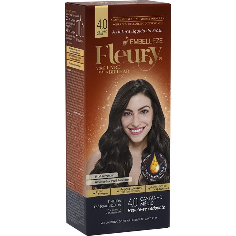 Conquistar um brilho a mais é se revelar uma nova mulher, mais confiante, mais feliz, com uma vida nova pela frente. E com Fleury esse brilho a mais está em suas mãos. Escolha a cor dos seus desejos. Com Fleury sua estrela se mostra ainda mais radiante e você vive a vida com um brilho a mais. Por ser uma tintura líquida permanente, Fleury garante cores com um brilho intenso e radiante, além de uma aplicação fácil, que garante a melhor cobertura dos fios brancos