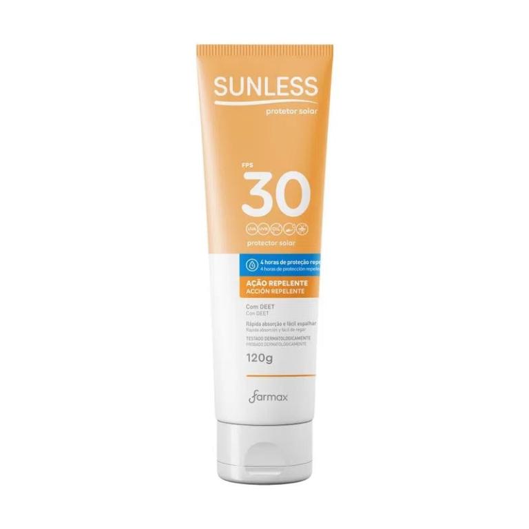 O Protetor Solar com Repelente FPS 30 Sunless oferece cuidado em dobro. Além de proteger a pele contra a ação nociva dos raios UVA e UVB, ainda repele pernilongos e mosquitos transmissores de doenças.