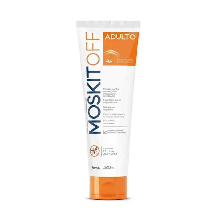 O Repelente Adulto Bisnaga Moskitoff 120ml protege contra pernilongos e mosquitos, inclusive os transmissores de Aedes aegypti, com fácil aplicação e ação duradoura de 4 horas.