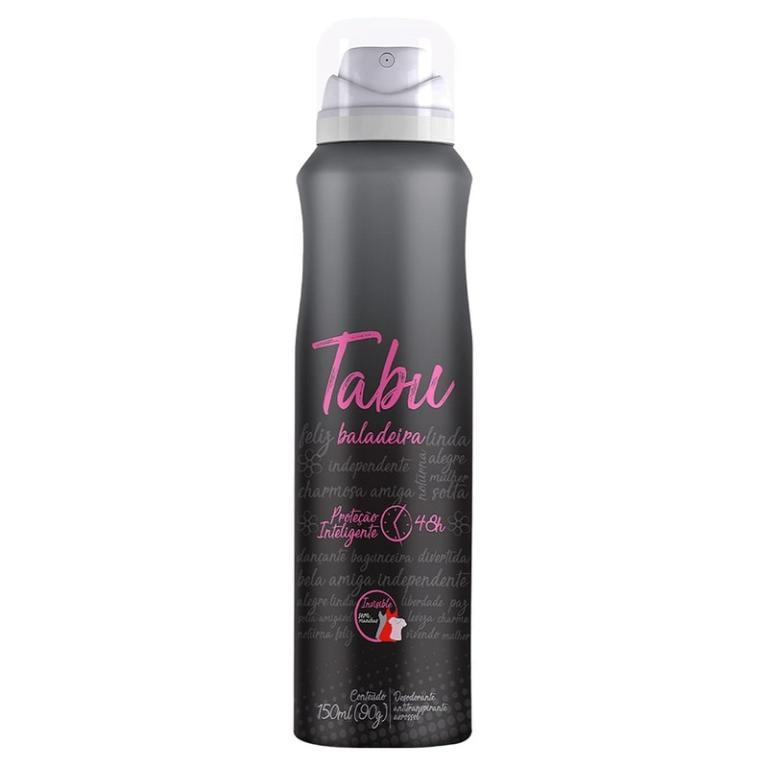 O Desodorante Aerosol Antitranspirante Tabu Baladeira, proporciona agradável toque seco e proteção intensiva perfumada 48 horas de Proteção Inteligente - Axilas secas e perfumadas com ação seletiva contra as bactérias causadoras do mau odor. Mantém o equilíbrio natural da pele.