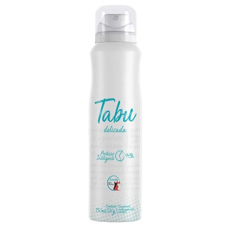 O Desodorante Aerosol Antitranspirante Tabu Delicada proporciona agradável toque seco e proteção intensiva perfumada