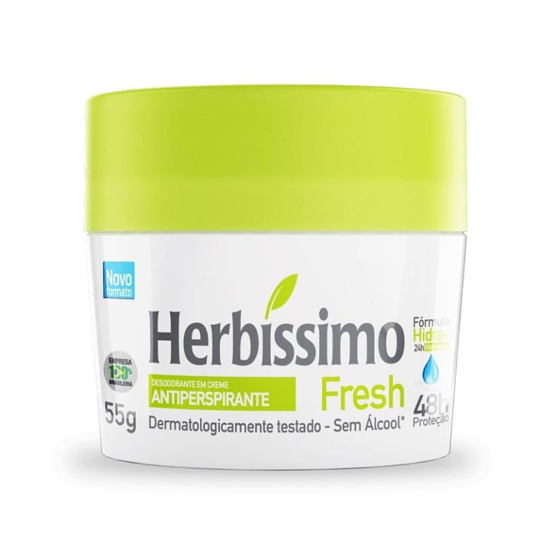 O Creme Desodorante Antiperspirante Fresh possui fórmula especialmente desenvolvida com glicerina vegetal e óleo de girassol, que promovem a hidratação das axilas por até 24 horas.
